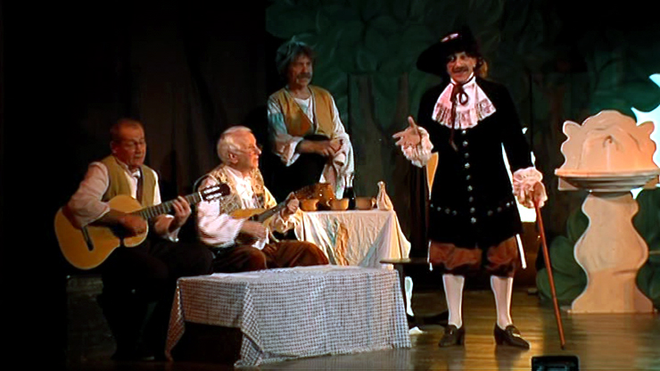 George Dandin è una commedia in tre atti scritta da Molière nel 1668 (in occasione del "Grande Divertimento Reale" di Versailles) in cui possiamo ritrovare molti elementi tipici della poetica del grande drammaturgo francese. Usando situazioni ed elementi tipici della tradizione, Molière ci offre un'ulteriore tessera del suo "ciclo delle corna" che rappresenta uno dei punti più alti del percorso teatrale che il drammaturgo francese stava compiendo: partendo dalla farsa e dalla Commedia dell'Arte egli dà vita al moderno teatro borghese, un teatro che sotto l'esagerazione grottesca della farsa e la tipizzazione dei caratteri, nasconde una satira tagliente, una riflessione, comica ma "amara", sulla società contemporanea a Molière, governata dalle convenzioni di una aristocrazia ipocrita e perbenista, in cui il "blasone" è tutto. Un teatro che ridona vita agli altrimenti logori meccanismi scenici della tradizione (le maschere, le corna...) immergendoli nella realtà, donando loro un significato sociale, talvolta addirittura sovversivo, senza perdere nulla della loro originale comicità prorompente. Una comicità che, ancora oggi, permette al pubblico contemporaneo di ridere e, perchè no, riflettere. Nel nostro "liberissimo adattamento", abbiamo voluto aggiungere il dialetto bresciano, i brani "classici" interpretati da "i sunadur de lüsso", le canzoni popolari accompagnate dalle chitarre dei "sunadur de osteria", la caratterizzazione dei personaggi spinta fino al paradosso, per creare un divertimento di semplici sapori, semplici come le schiette e scorrevoli morali da proverbio, le situazioni comiche ed anche un po' tristi, perchè comicità e tristezza sono molto vicine nel gioco delle tante ingiustizie della vita.